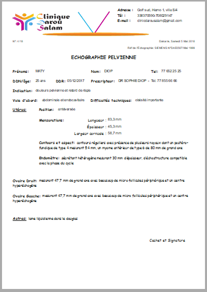 Write your ultrasound, hysterosonography or scan results easily using pre-filled menus that meet the recommendations.